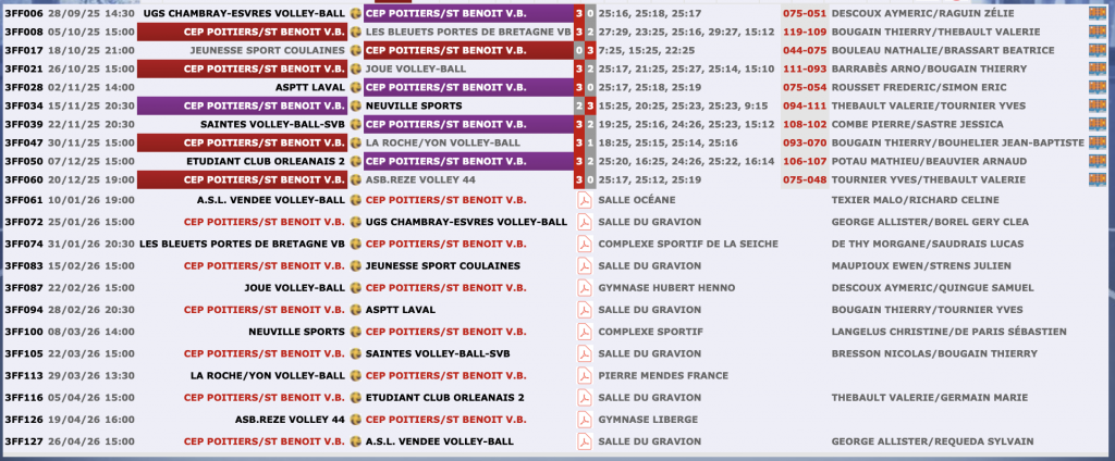 Calendrier & résultats N3F Calendrier Nationale 3 Féminine CEP 1 – Poule F En ligne sur le site de la FFVB